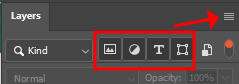 그래서 스마트오브젝트 뺀 픽셀레이어, 조정레이어, 텍스트레이어, 모양레이어 아이콘 선택 후 메뉴(☰)를 누르면 Delete Hidden Layers가 나옵니다!